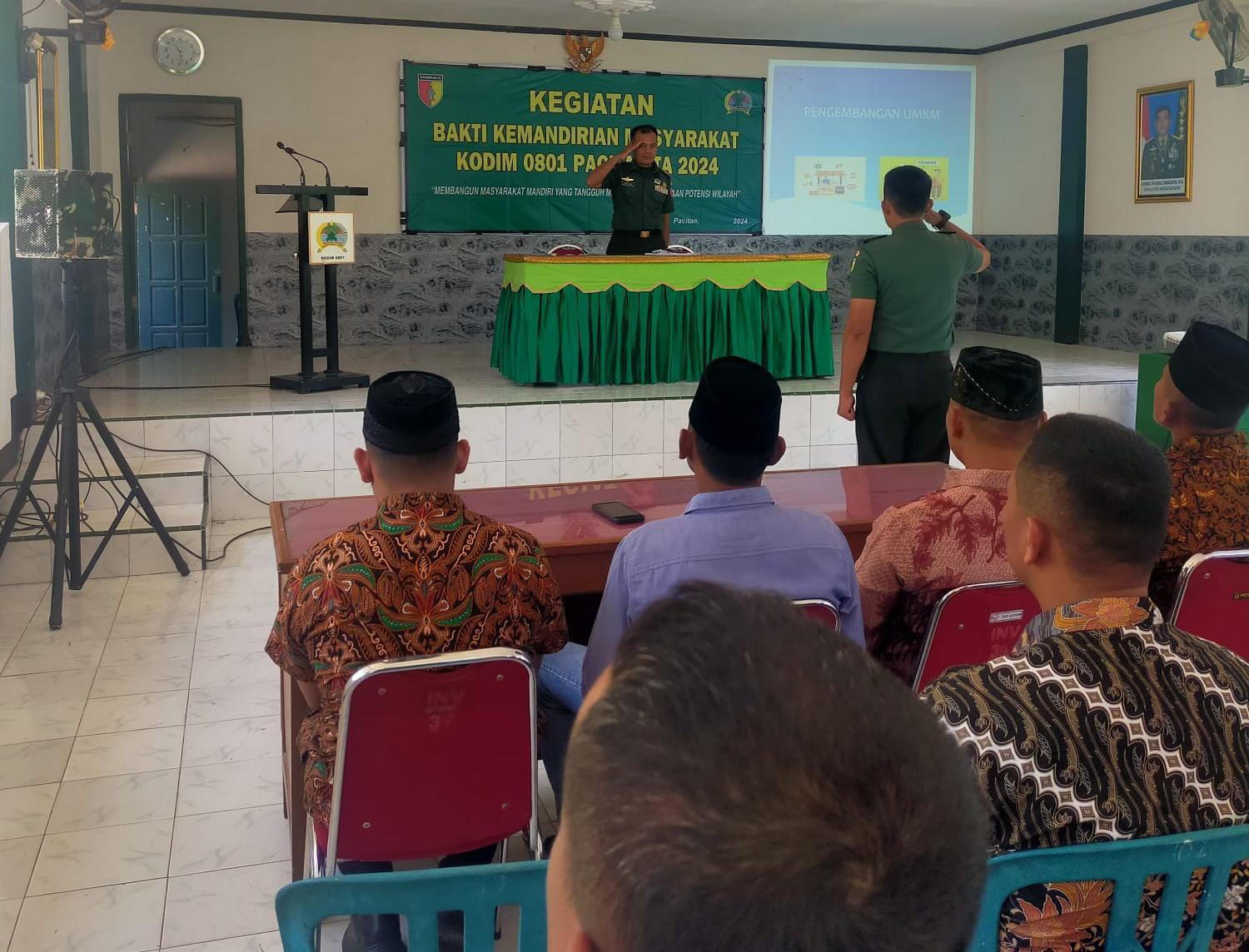 Pacitan RevolosiNews - Guna membangun potensi wilayah, Kodim 0801/Pacitan menggelar kegiatan bhakti kemandirian masyarakat tahun 2024 dengan tema “Membangun Masyarakat Mandiri Yang Tangguh Melalui Pemberdayaan Potensi Wilayah”, bertempat di Aula Kopral Sigit,Jln. Letjen R. Suprapto No.42, Barean, Desa/Kel.Sidoharjo,Kec/Kota Pacitan,Kamis (07/11/2024).